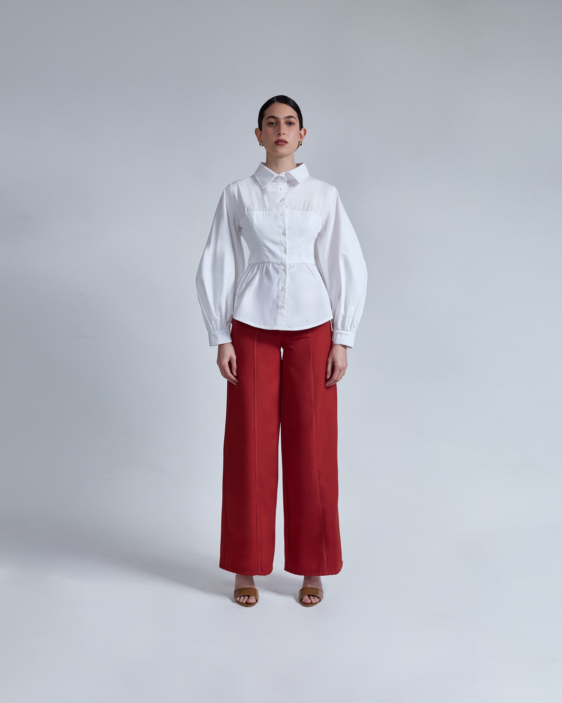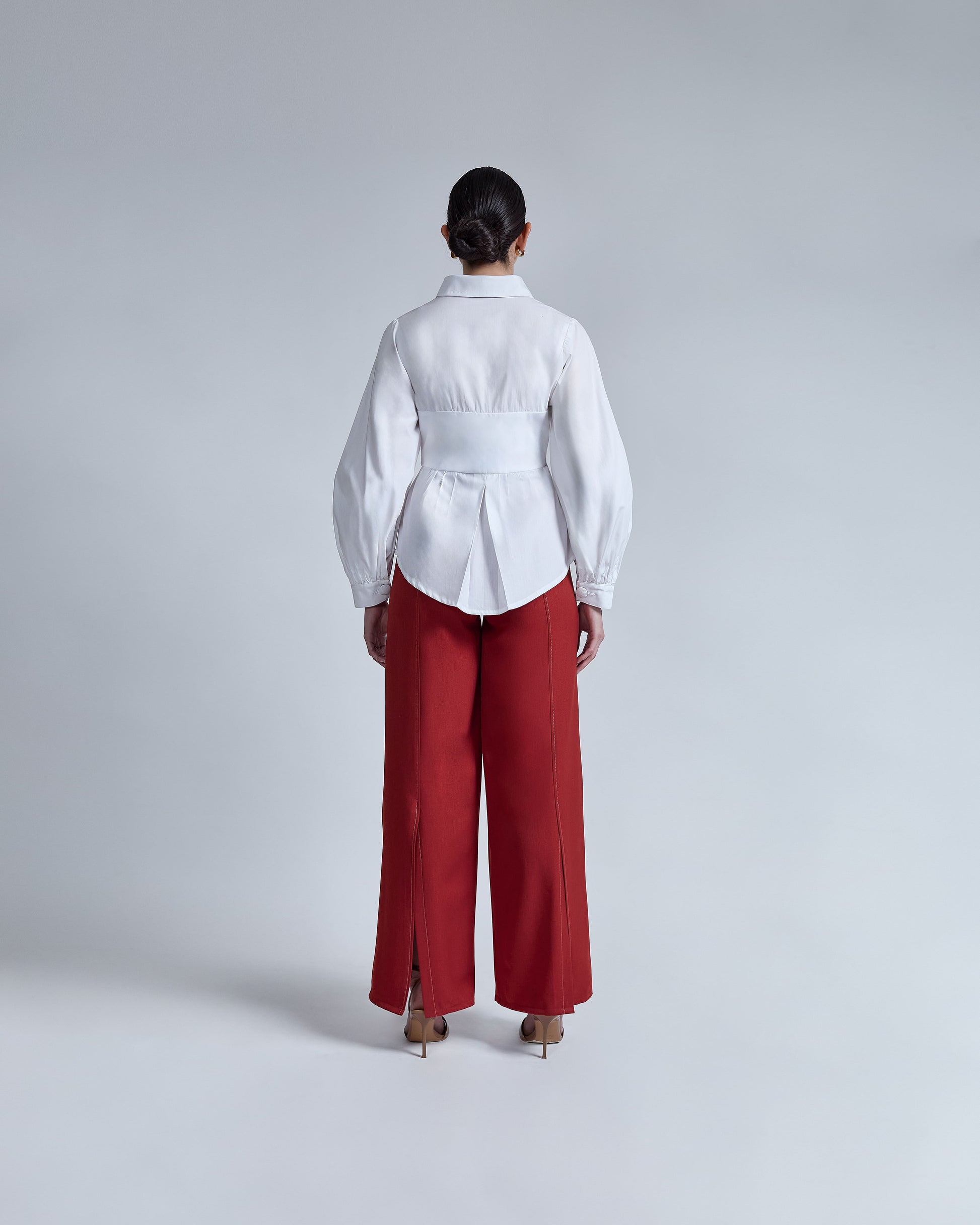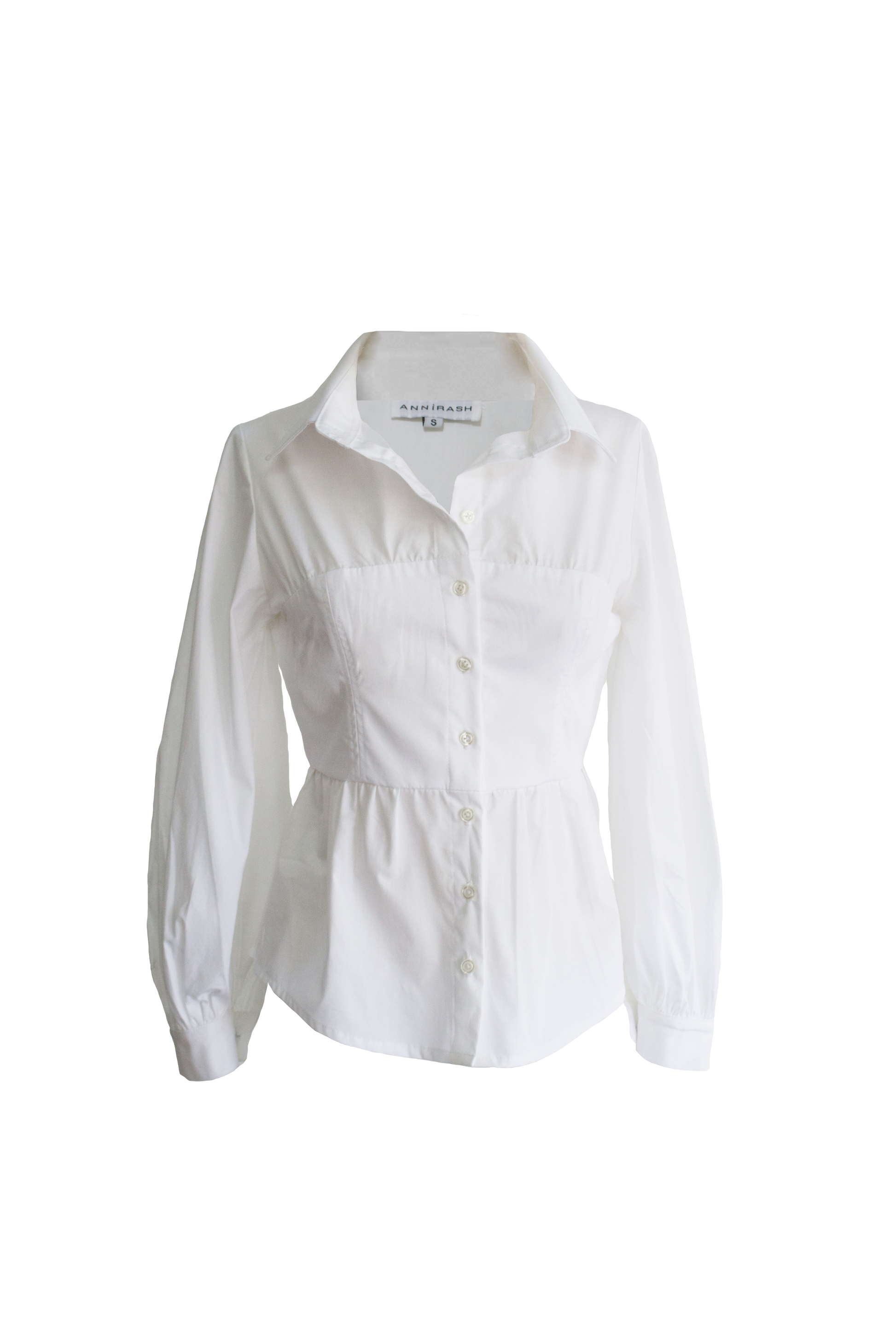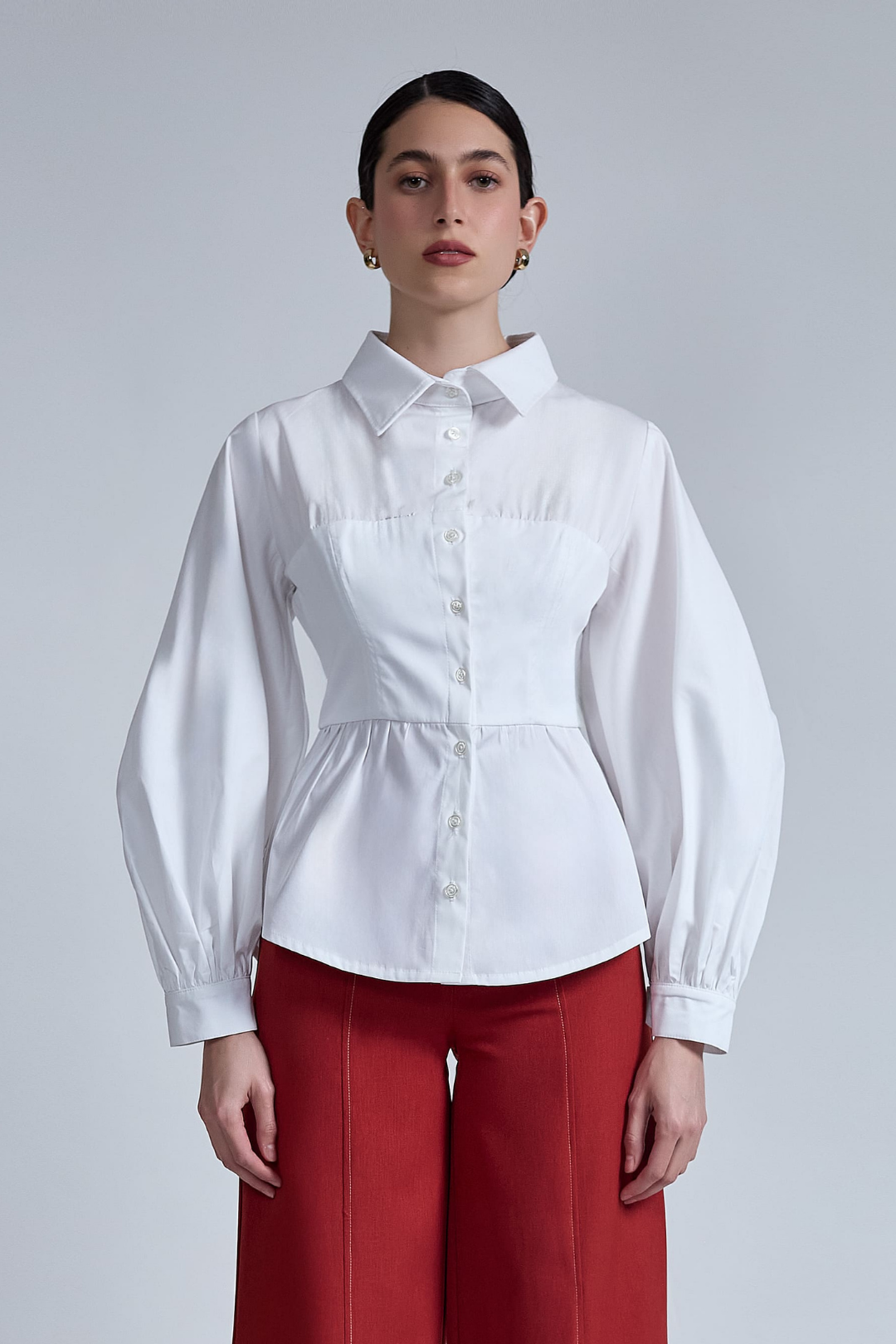 Camisa de vestir con top incluido en su diseño, botones y ojales por la parte delantera y tablón decorativo en la parte trasera