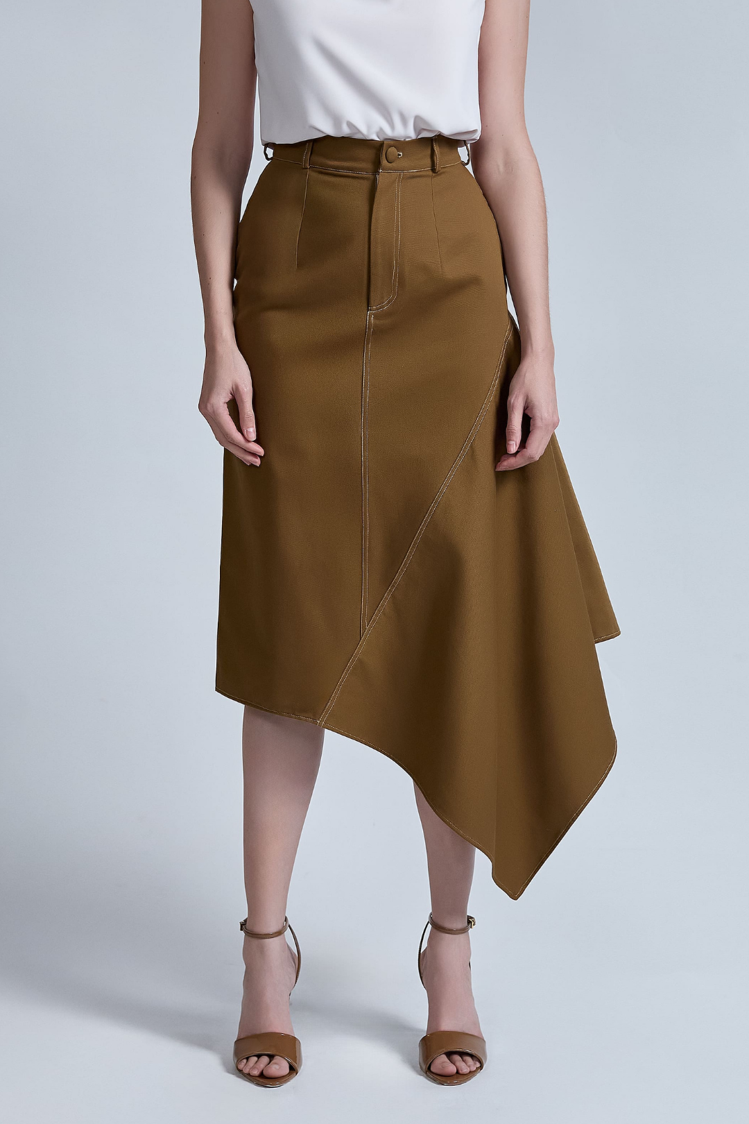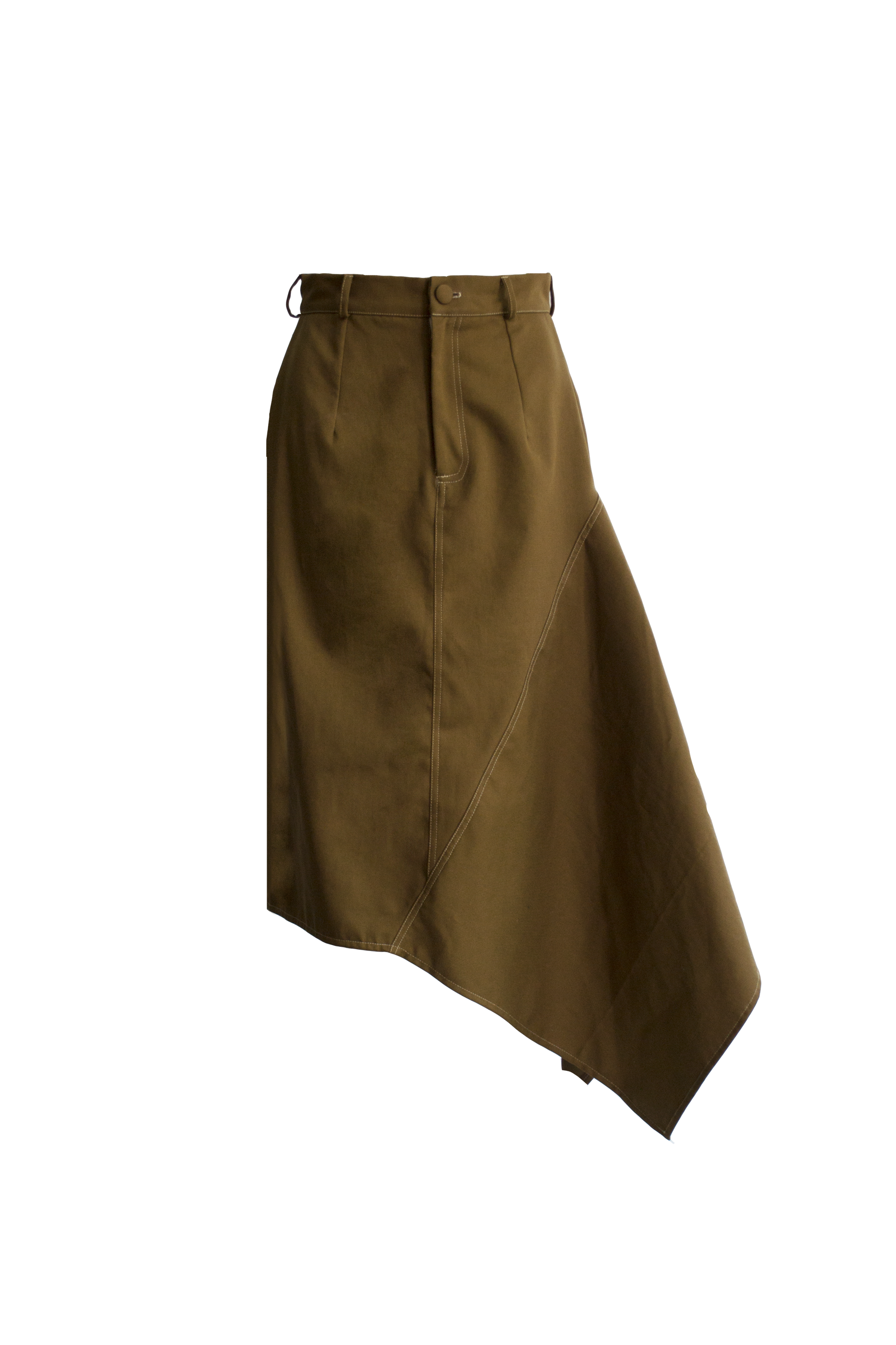Falda línea recta desigual, con cierre, ojal y botón en parte delantera