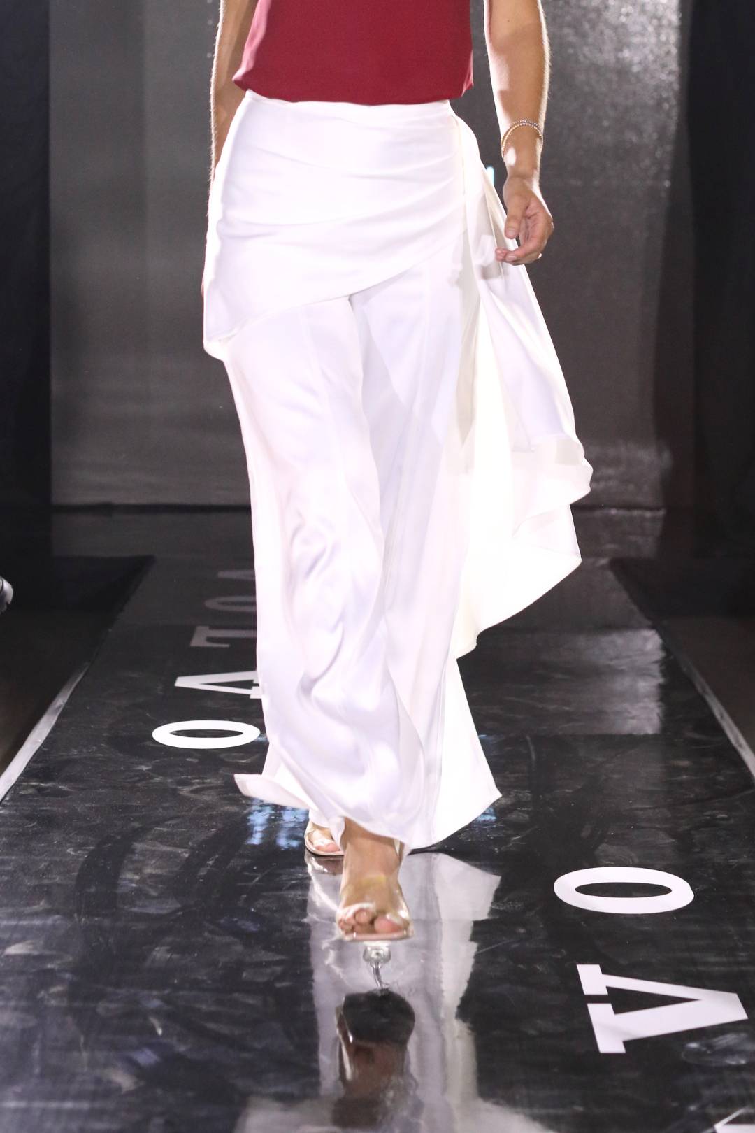 Pantalón wide led con faldón y drapeado decorativo en la parte delantera, cierre, botón y ojal en la parte trasera.