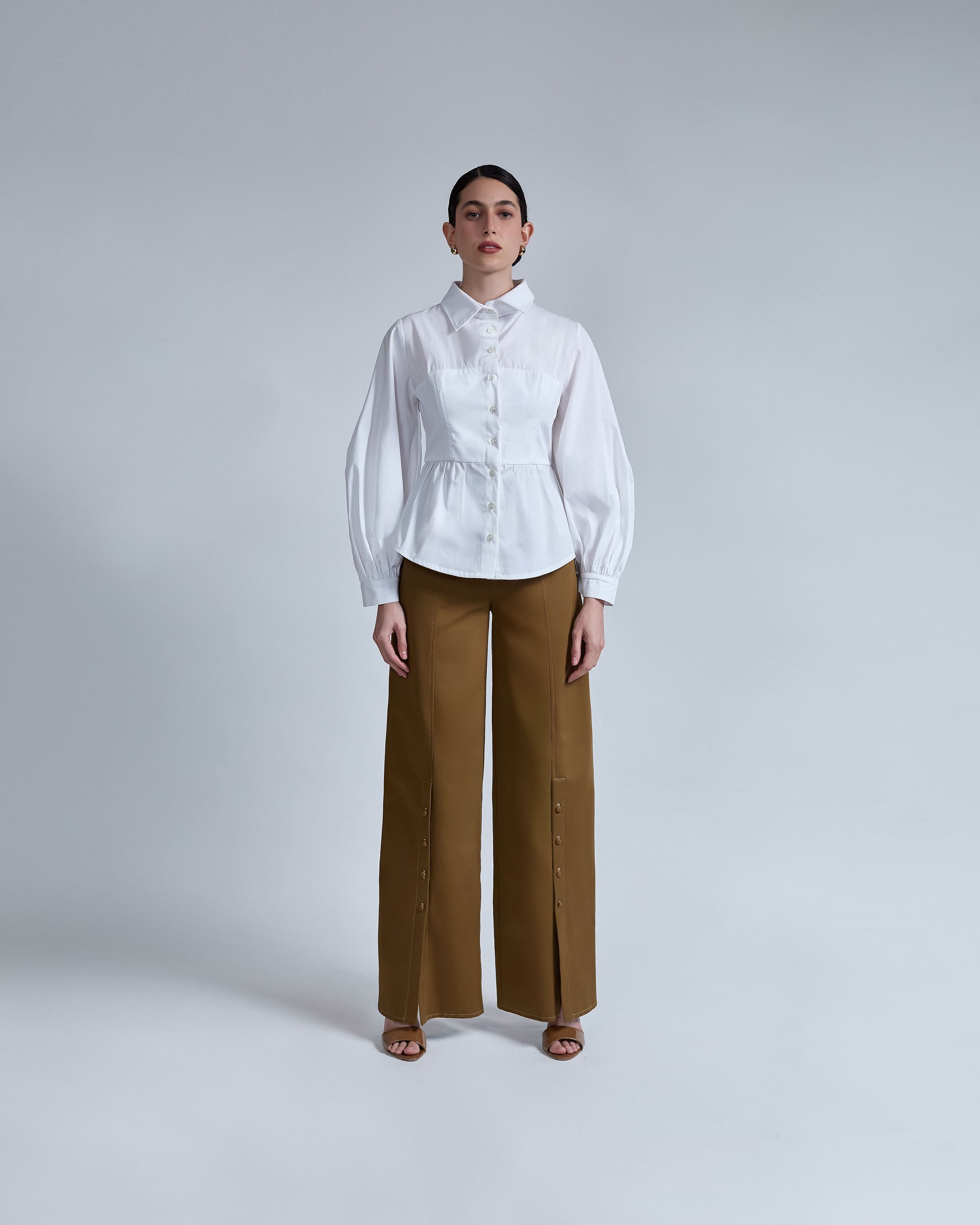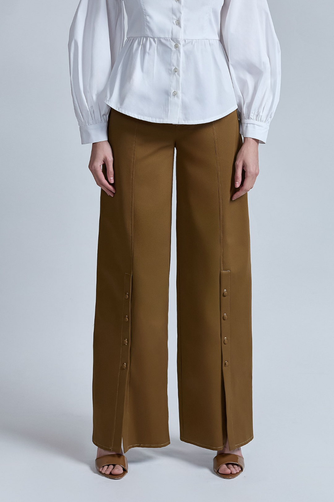 Pantalón wide leg con cierre, abertura y ojales en la parte delantera